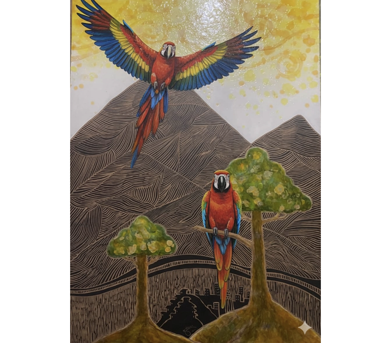 The Guacamaya Project emerged as a bridge—between art and activism, grief and creation, exile and reunion. It brings together artists across all disciplines—painting, sculpture, photography, poetry, music—inviting them to create works inspired by the macaw, a being that embodies resistance and hope. Each artwork becomes a gesture of creative resistance, a dialogue between nations, and a reminder that democracy and freedom are living organisms: fragile, radiant, and worthy of defense.